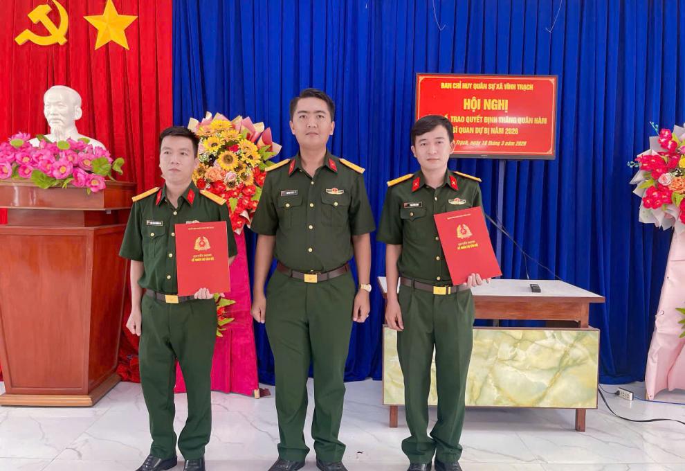 Sáng ngày 18/3/2026, thừa uỷ quyền của Bộ CHQS tỉnh An Giang, Ban CHQS xã Vĩnh Trạch tổ chức Hội nghị công bố và trao Quyết định thăng quân hàm sĩ quan dự bị năm 2026. Đồng chí Thiếu tá Huỳnh Ái Lel, Uỷ viên Ban Thường vụ Đảng uỷ xã, Chỉ huy trưởng Ban CHQS xã dự và chủ trì hội nghị.