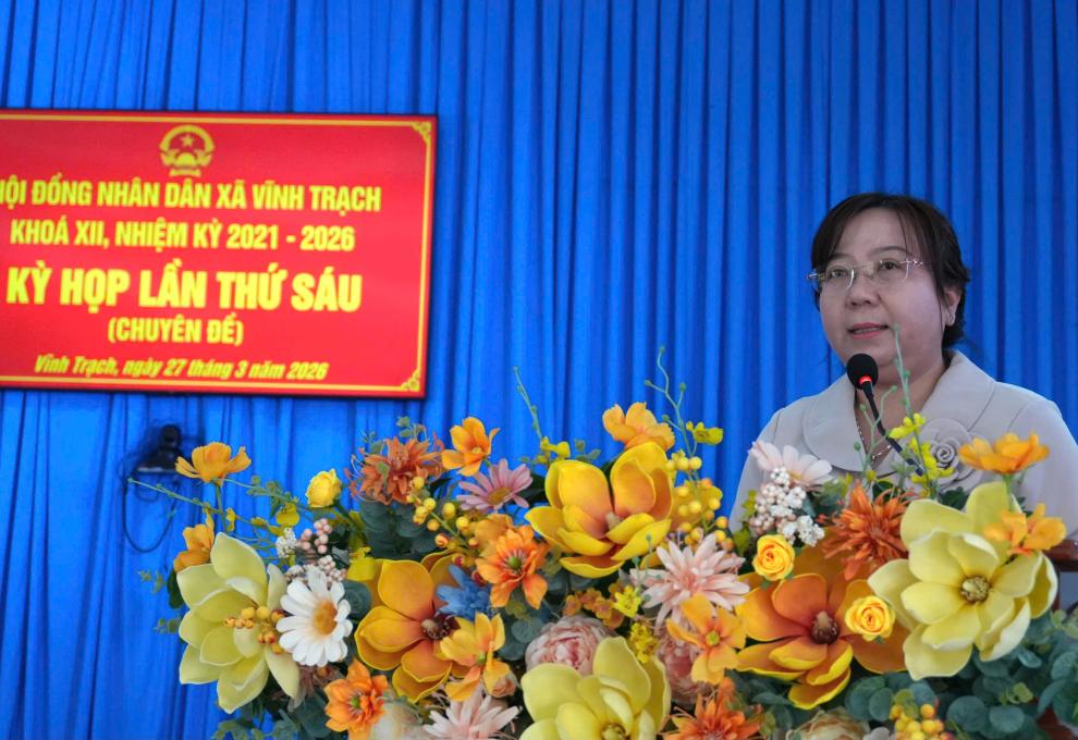 Sáng ngày 27/3/2026, Hội đồng nhân dân xã Vĩnh Trạch khóa XII, nhiệm kỳ 2021–2026 tổ chức Kỳ họp lần thứ sáu (chuyên đề). Bà Nguyễn Thị Tuyết Minh – Bí thư Đảng ủy, Chủ tịch Hội đồng nhân dân xã và ông Võ Phương Đông – Uỷ viên Ban Chấp hành Đảng bộ, Phó Chủ tịch Hội đồng nhân dân xã ch