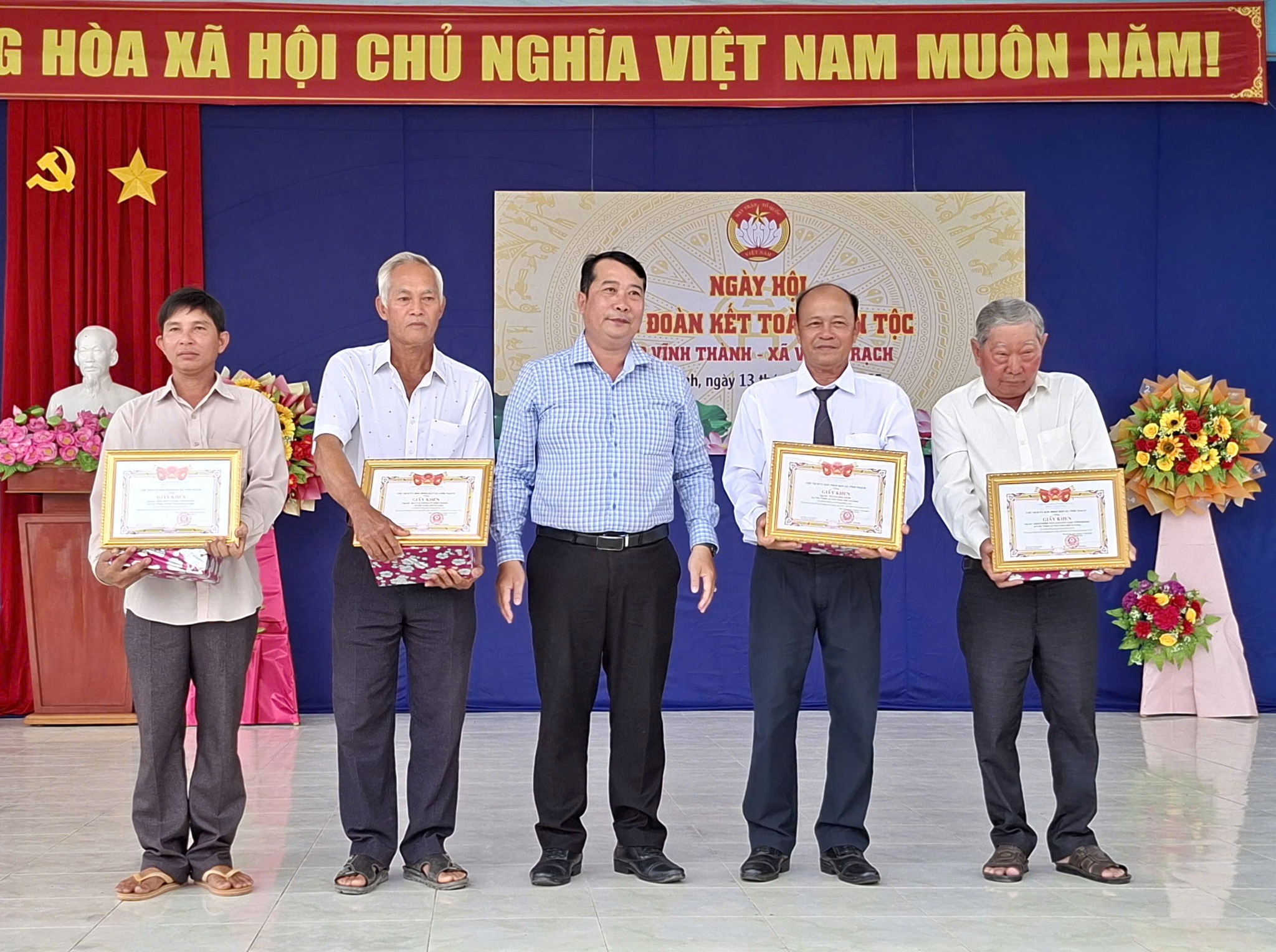 Nhân dịp này, ấp Vĩnh Thành được trao tặng danh hiệu ấp văn hóa năm 2025; UBND xã khen thưởng 4 tập thể và 6 cá nhân có thành tích xuất sắc trong phong trào “Toàn dân đoàn kết xây dựng đời sống văn hóa ở khu dân cư” năm 2025; trao tặng 5 căn nhà Đại đoàn kết cho 5 hộ dân có hoàn cảnh khó khăn về nhà ở./.