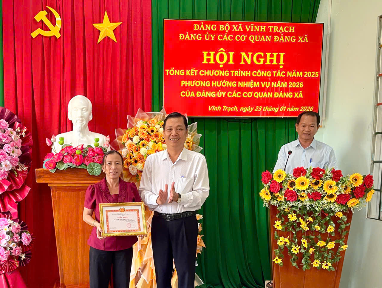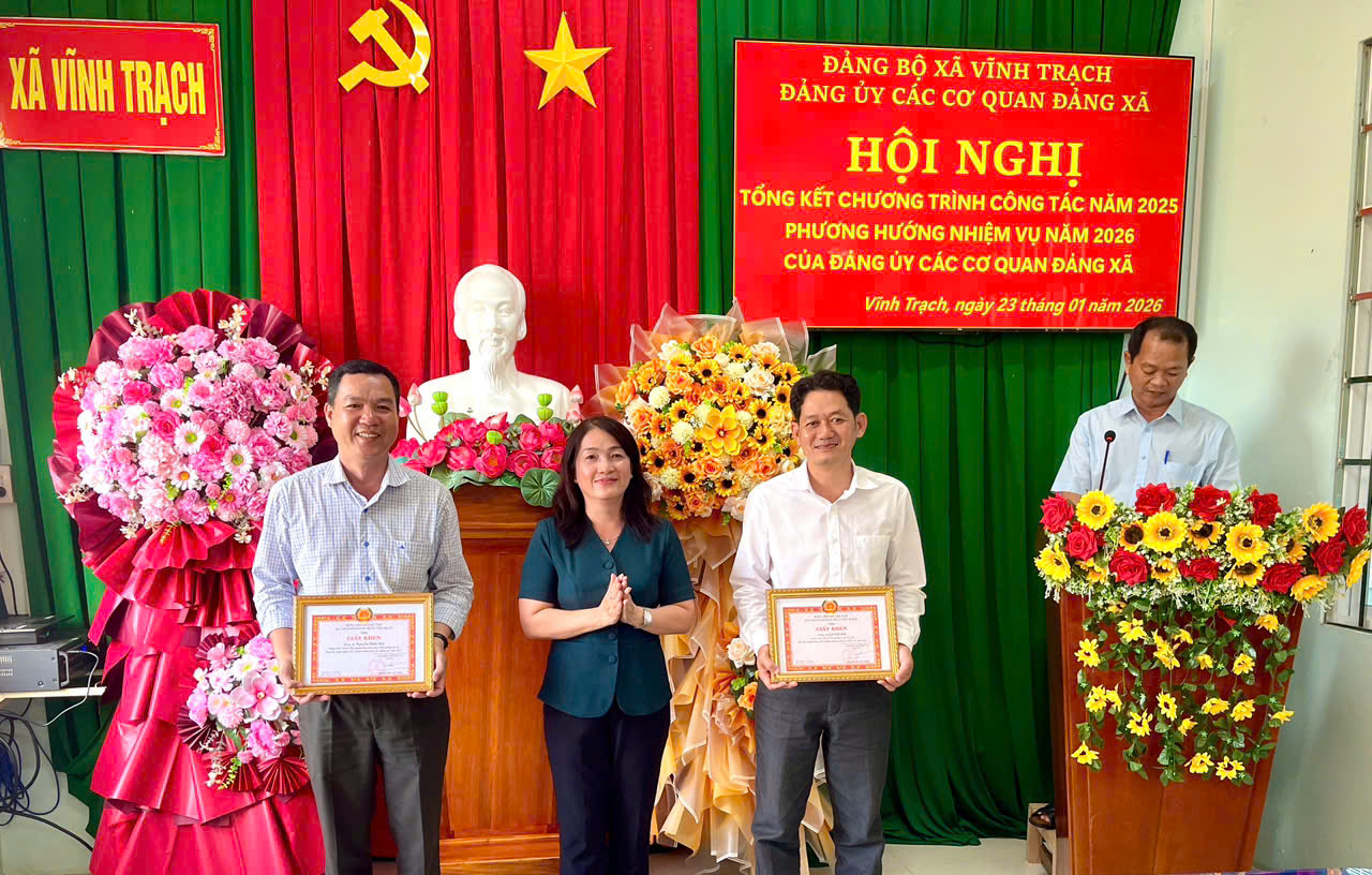 Dịp này 03 cá nhân đạt thành tích tiêu biểu”Hoàn thành xuất sắc nhiệm vụ” năm 2025 được Ban Chấp hành Đảng bộ xã Vĩnh Trạch tặng giấy khen và 01 tập thể đạt thành tích tiêu biểu”Hoàn thành xuất sắc nhiệm vụ” năm 2025 được Ban Chấp hành Đảng ủy các cơ quan Đảng xã Vĩnh Trạch tặng giấy khen./.