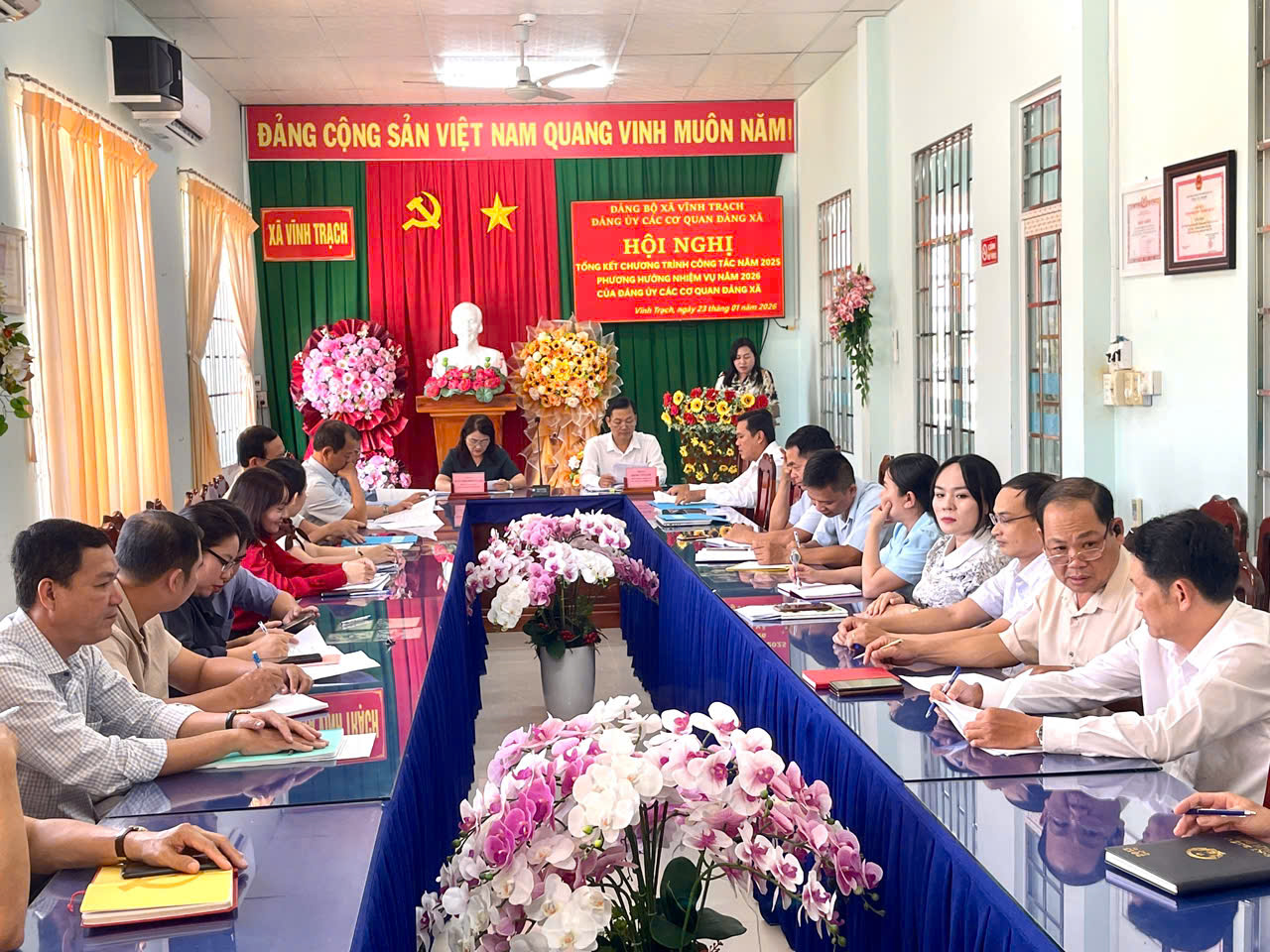 Chiều ngày 23 tháng 01 năm 2026, Đảng ủy các cơ quan Đảng xã tổ chức Hội nghị Ban Chấp hành Đảng ủy các cơ quan Đảng xã (mở rộng) nhằm tổng kết việc thực hiện nhiệm vụ chính trị năm 2025 và triển khai phương hướng, nhiệm vụ trọng tâm năm 2026. Đồng chí Trần Thị Phong Lan -, Phó Bí thư Thường trực Đảng ủy, Bí thư Đảng ủy các cơ quan Đảng xã chủ trì hội nghị; Đồng chí Đặng Văn Lợi, Ủy viên Ban Thường vụ Đảng ủy, Trưởng Ban Xây dựng Đảng, Phó Bí thư Đảng ủy các cơ quan Đảng xã Vĩnh Trạch, cùng các đồng chí Ủy viên Ban Chấp hành; Ủy viên Ủy ban Kiểm tra Đảng ủy các cơ quan Đảng xã; các đồng chí Bí thư, Phó Bí thư, Chi ủy viên và đảng viên các Chi bộ trực thuộc Đảng ủy các cơ quan Đảng xã.