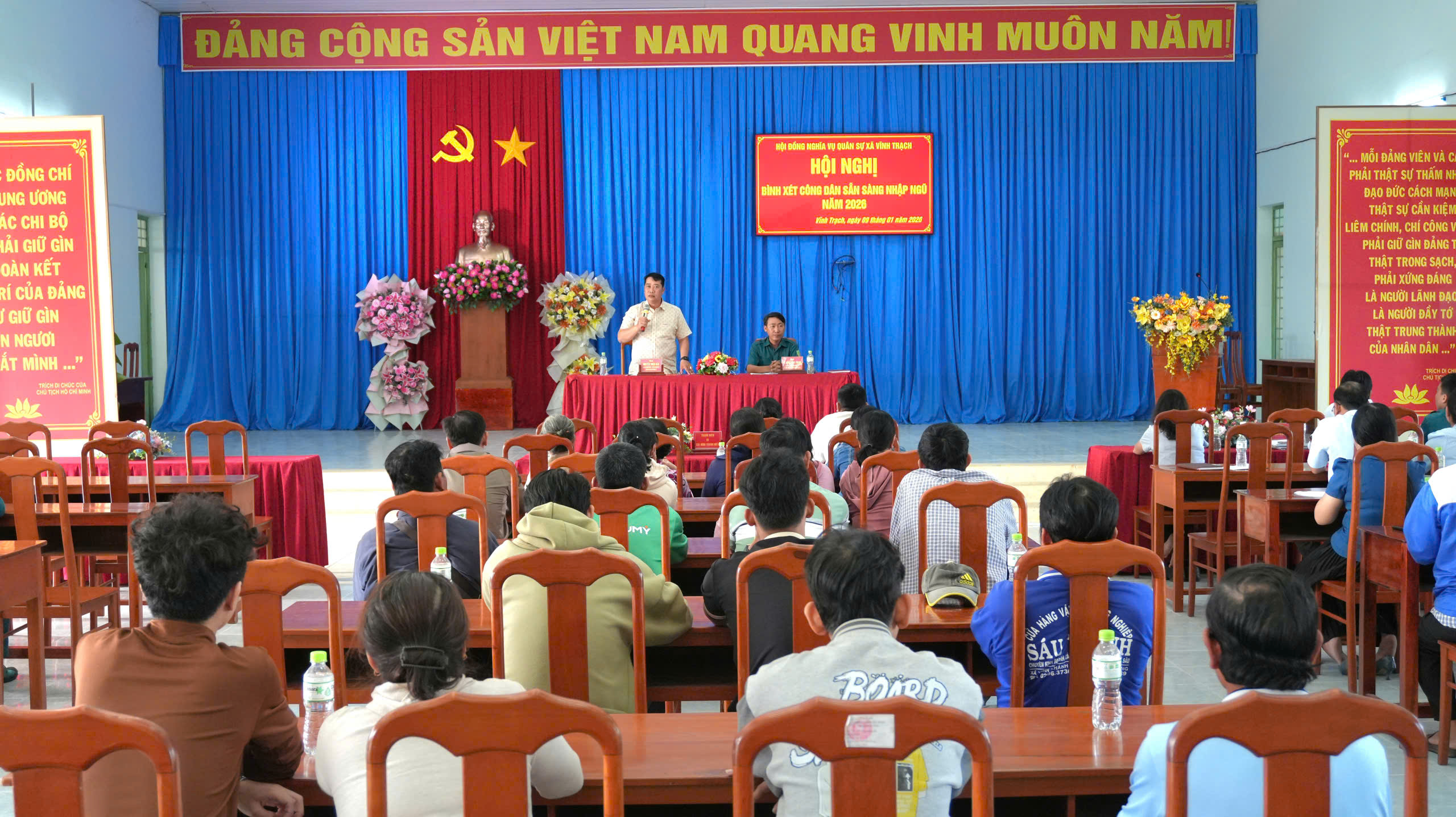 Trong hai ngày 08 và 09/01/2026, Hội đồng Nghĩa vụ quân sự xã Vĩnh Trạch tổ chức 02 buổi hội nghị bình xét công dân sẵn sàng nhập ngũ, tham gia nghĩa vụ quân sự và nghĩa vụ Công an nhân dân năm 2026. Ông Nguyễn Thiện Bảo - Phó Bí thư Đảng uỷ, Chủ tịch Uỷ ban nhân dân xã, kiêm Chủ tịch Hội đồng Nghĩa vụ quân sự xã Vĩnh Trạch chủ trì hội nghị; Ông Lê Hồng Phúc Thạn