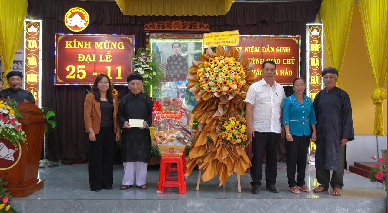 Sáng ngày 13/01/2026, Đoàn công tác Đảng ủy – Hội đồng nhân dân – Ủy ban nhân dân – Ủy ban Mặt trận tổ quốc Việt Nam xã Vĩnh Trạch do bà Nguyễn Thị Tuyết Minh – Bí thư Đảng ủy, Chủ tịch Hội đồng Nhân dân xã làm Trưởng đoàn đã đến thăm, tặng quà và chúc mừng Ban Trị sự Giáo hội Phật giáo Hòa Hảo Vĩnh Trạch nhân dịp kỷ niệm lần thứ 106 Ngày Đản sinh Đức Huỳnh Giáo Chủ (