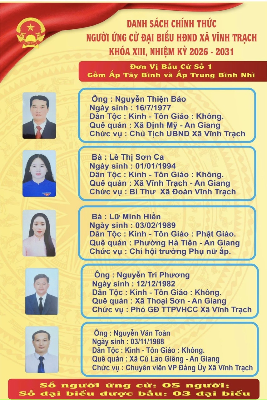 XÃ VĨNH TRẠCH SẴN SÀNG CHO CUỘC BẦU CỬ ĐẠI BIỂU QUỐC HỘI KHÓA XVI VÀ ĐẠI BIỂU HĐND CÁC CẤP NHIỆM KỲ 2026 – 2031