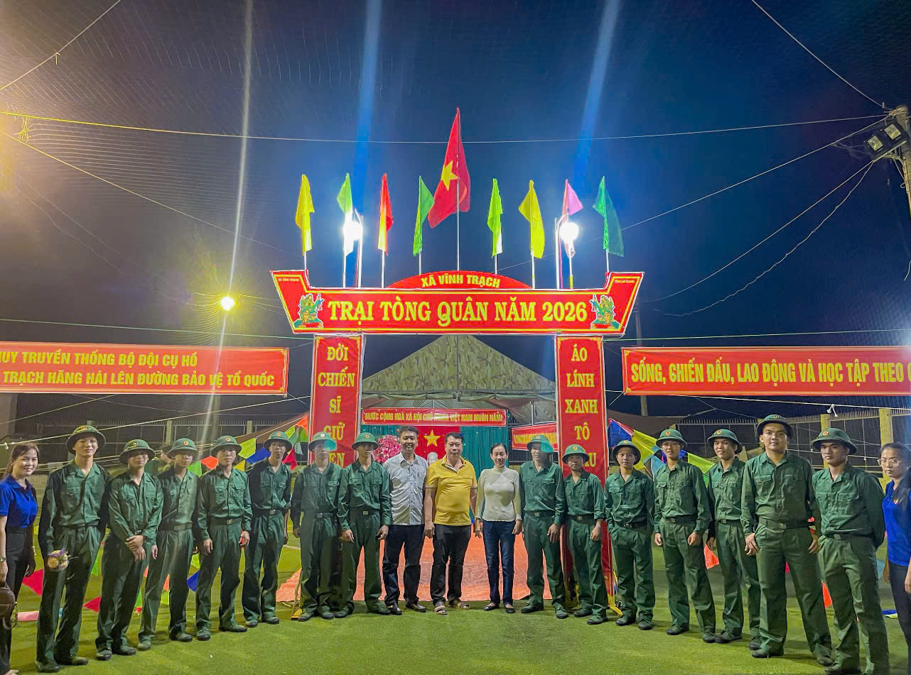 Ngày 04/3/2026, xã Vĩnh Trạch tổ chức khai mạc Hội trại tòng quân năm 2026 với chủ đề “Tự hào thanh niên Việt Nam” tạo khí thế trước ngày giao quân.