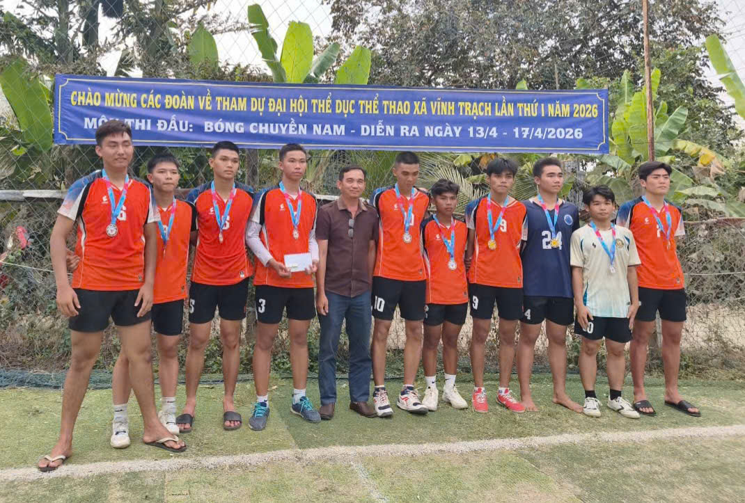 Nằm trong chuỗi hoạt động của Đại hội Thể dục Thể thao xã Vĩnh Trạch lần thứ I năm 2026, Trung tâm Dịch vụ tổng hợp xã Vĩnh Trạch tổ chức thành công Giải bóng chuyền nam, thu hút sự tham gia của 12 đội bóng đến từ các ấp và đơn vị trường học trên địa bàn.