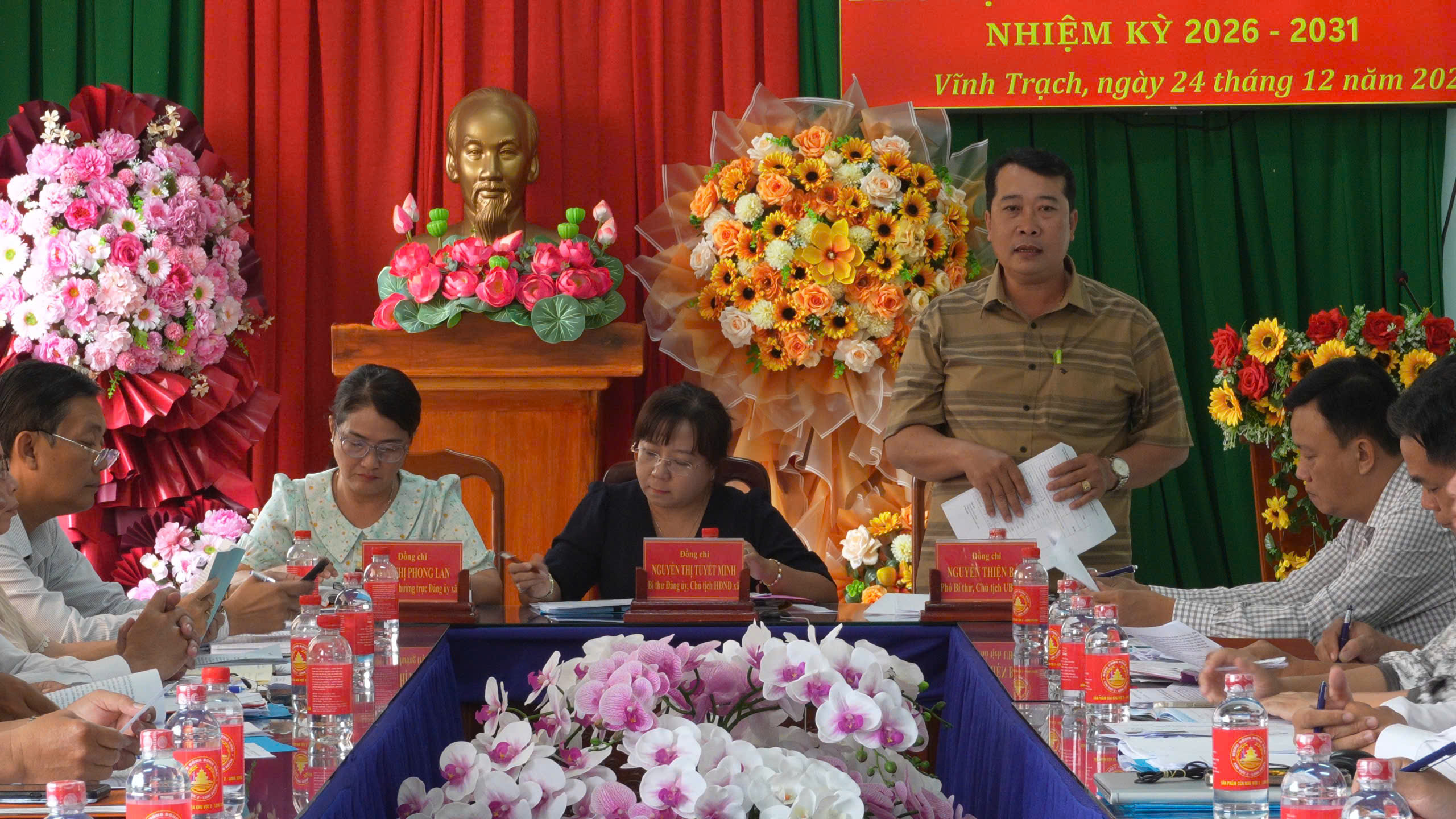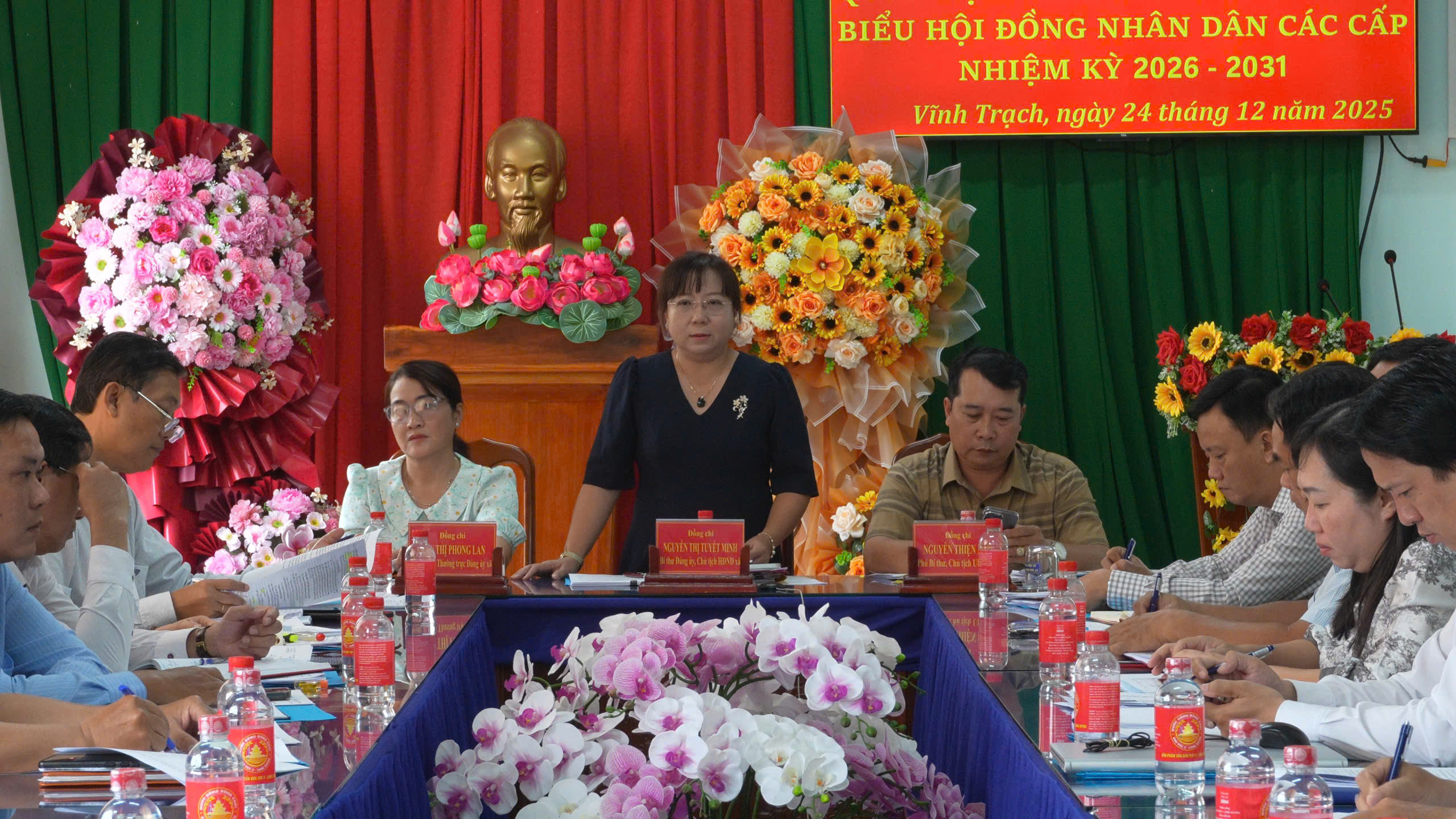 Chiều ngày 24/12/2025, Đảng ủy xã Vĩnh Trạch tổ chức Hội nghị Ban Chỉ đạo bầu cử đại biểu Quốc hội khóa XVI và bầu cử đại biểu Hội đồng nhân dân các cấp, nhiệm kỳ 2026 - 2031. Dự và chủ trì Hội nghị có Đồng chí Nguyễn Thị Tuyết Minh - Bí thư Đảng ủy, Chủ tịch Hội đồng nhân dân xã, Trưởng Ban Chỉ đạo; Đồng chí Trần Thị Phong Lan - Phó Bí thư Thường trực Đảng ủy, Phó Trưởng Ban Chỉ đạo; Đồng chí Nguyễn Thiện Bảo - Phó Bí thư Đảng ủy, Chủ tịch Ủy ban nhân dân xã, Phó Trưởng Ban Thường trực Ban Chỉ đạo cùng các đồng chí thành viên Ban Chỉ đạo.