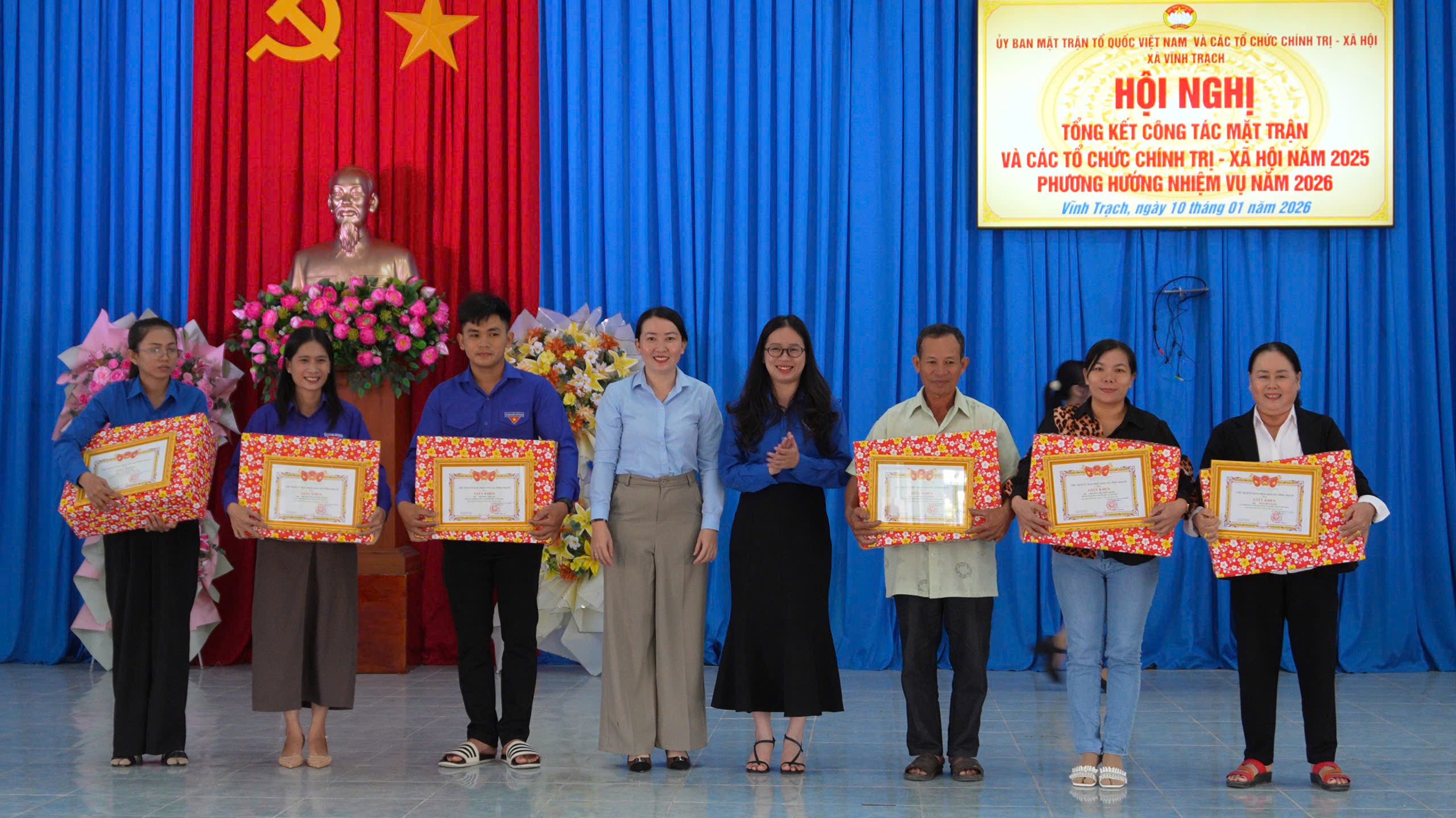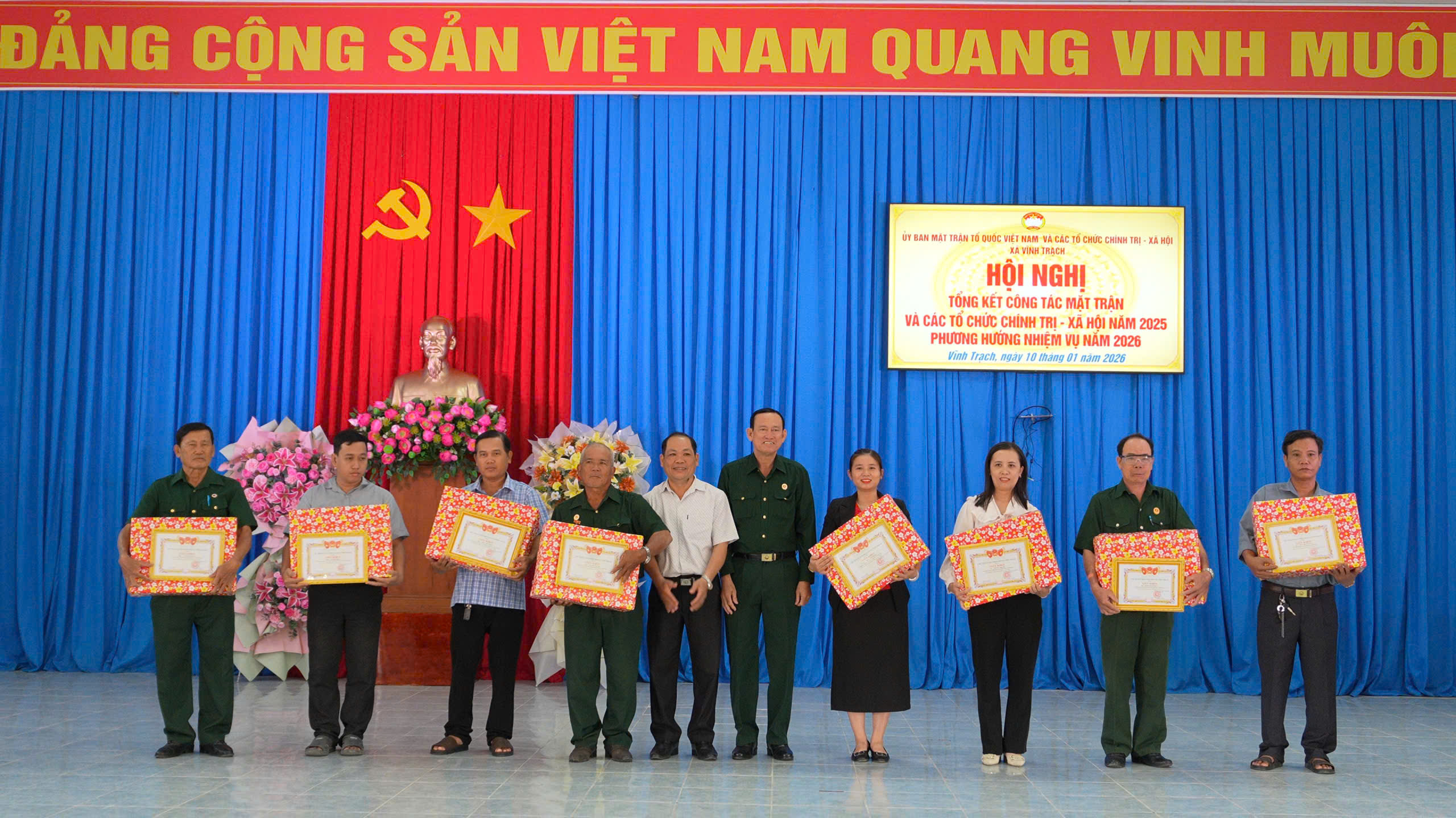 Dịp này, UBND xã Vĩnh Trạch khen thưởng 12 tập thể và 15 cá nhân có thành tích tiêu biểu trong các hoạt động của Mặt trận và các tổ chức chính trị – xã hội năm 2025./.