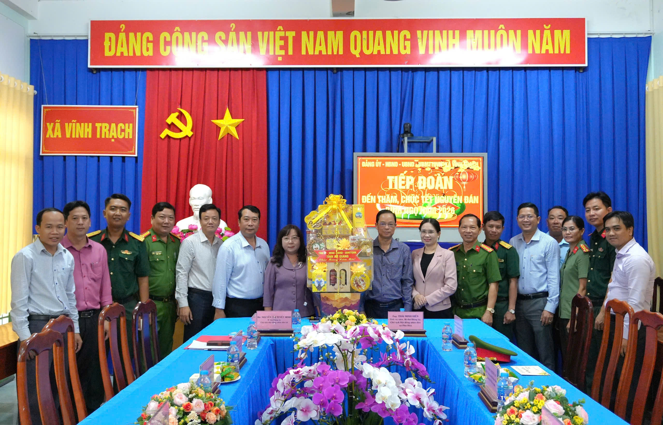 Nhân dịp này, Đoàn công tác lãnh đạo tỉnh đã trao tặng quà Tết cho xã Vĩnh Trạch; đồng thời đến thăm, chúc Tết và trao tặng quà cho ông Lê Minh Thắng, thương binh 41%, ngụ ấp Vĩnh Trung, phần quà trị giá 4 triệu đồng./.